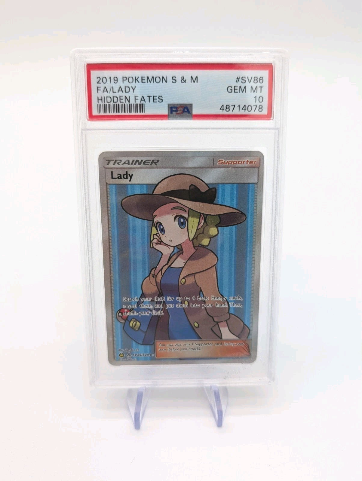 PSA 10 Lady SV86/SV94 Pokemon Trainer Hidden Fates Holo Graded Card